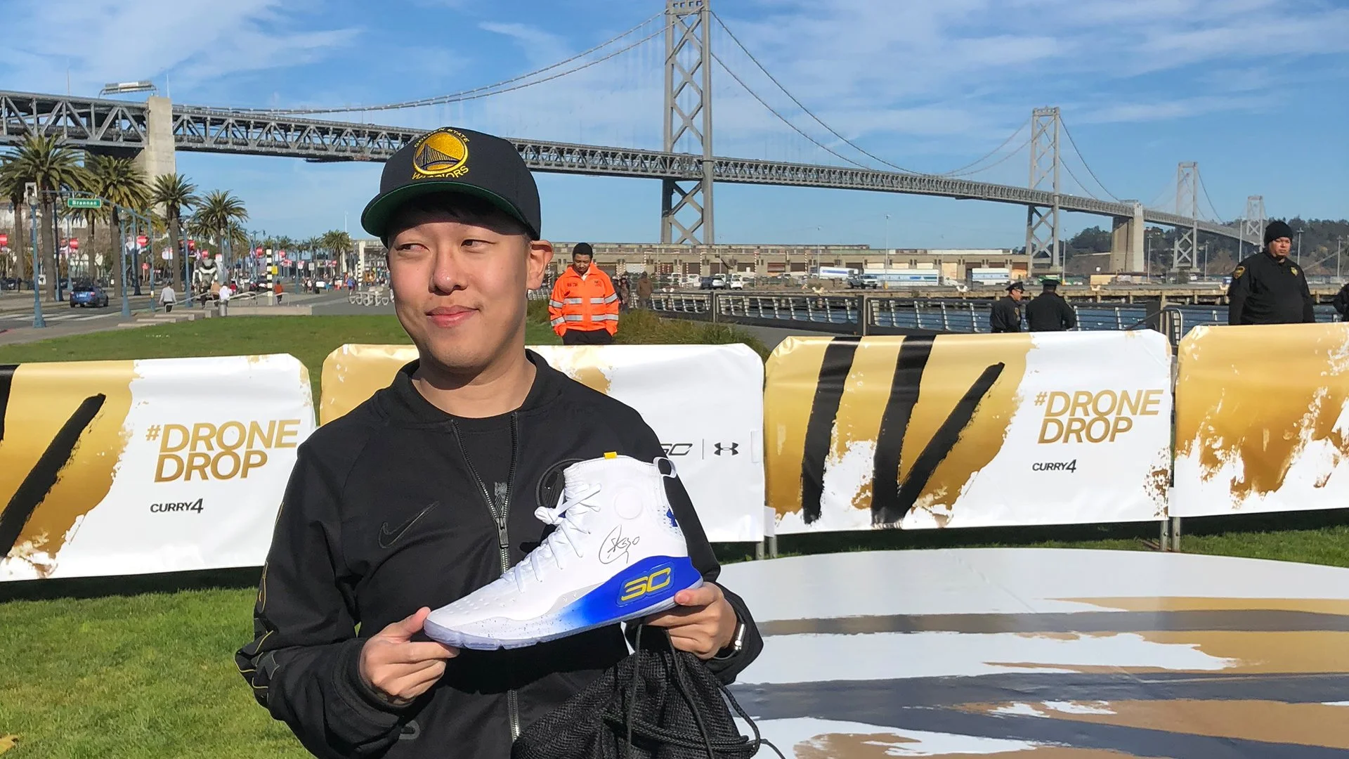Fans who got there first hailed the drones and scored the signed sneakers.